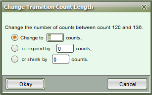 - If you know the new count structure (total counts) for the transition, choose the top button, to change to X counts (X being the new count structure you want for the transition). Otherwise, choose to Expand or Shrink (both separate options) by X counts.