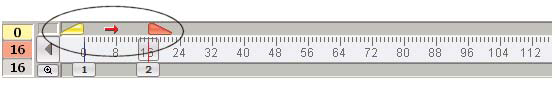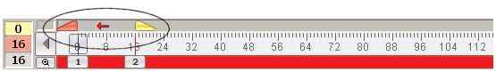 Using the above example, set #2 is the start of the set we have just finished, and now we want to move “backwards” to set #1 to design the ending count and transition between the two sets. Normally we would be thinking about the transition from the previous set (set #1) to the current set (set #2). To set up the anchors for the “backwards” design, set the editing anchors on the Count Track between set #2 and set #1. Click on the small red right arrow on the Count Track appearing between the Yellow and Red Anchors. The Red and Yellow Anchor will swap locations. Editing of shapes and all transitions will now be written backwards.