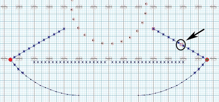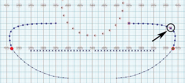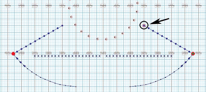 Press and hold the [SHIFT] key while clicking the mouse approximately halfway up one of the pathways of one of the arcs. A new editing handle (red square) will appear on the RIGHT path.