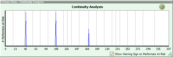 Selecting the option to Show Warning Sign on Performers At Risk in the Continuity Analyzer will display a visual warning symbol on the performer(s) at risk on counts where the jump occurs. This will be displayed on your design grid.