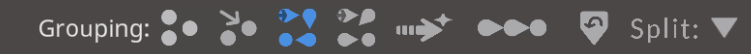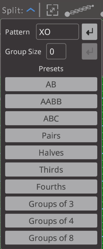 - Split: Enter a pattern or group size for the current selection to be regrouped to.