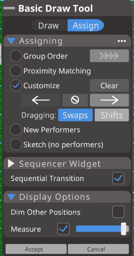 - Group Order: This will match performers based on the current grouping order and the order the new shape was drawn. The arrow will flip the grouping order.