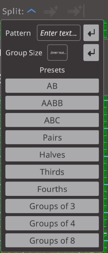 - Split: Splits the currently selected group into the selected group size.