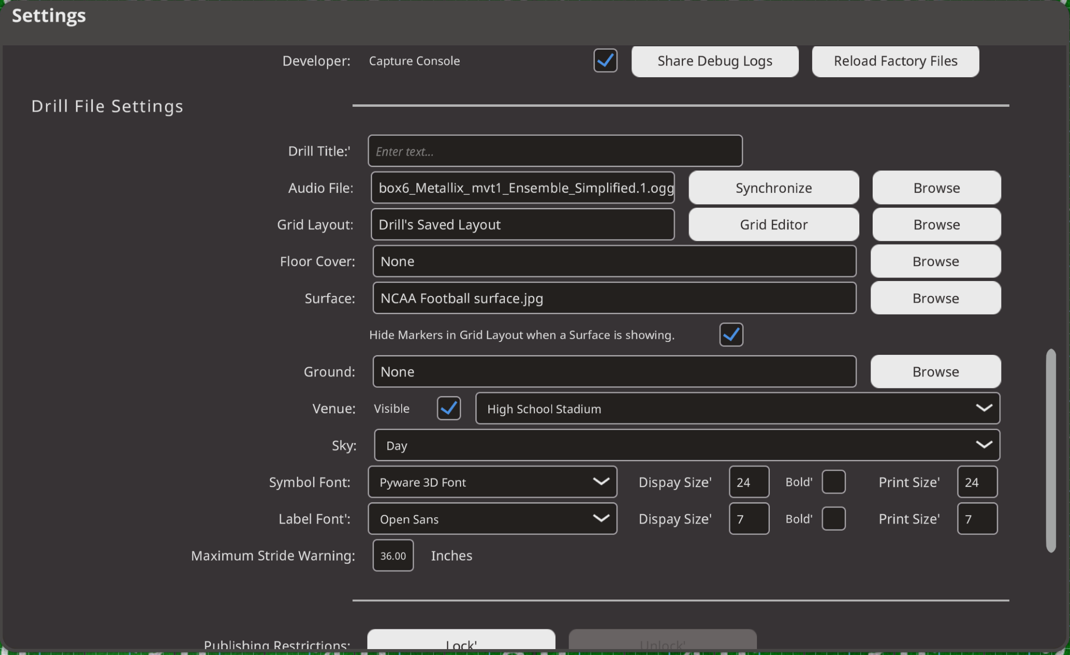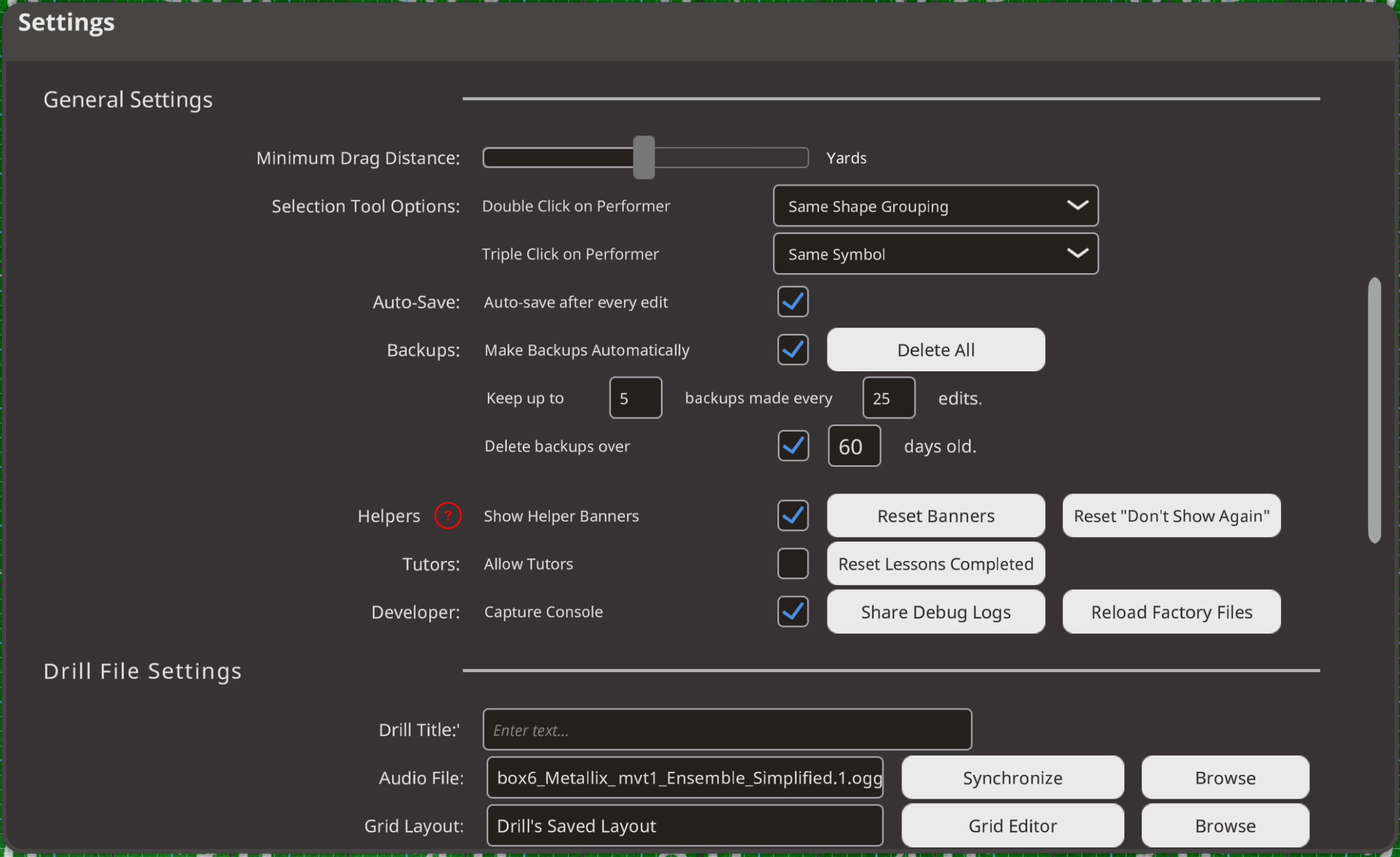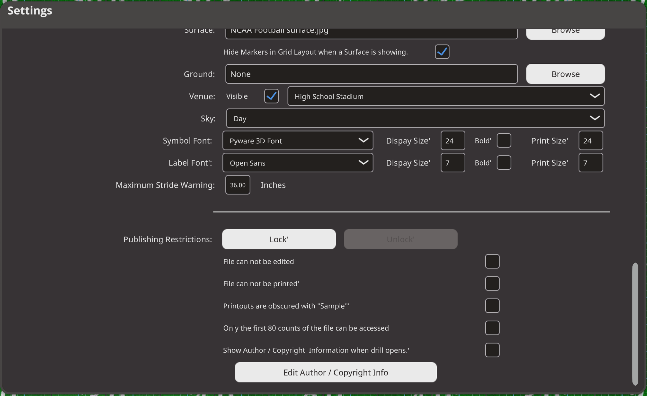 - Show Author / Copyright Information when drill opens: Enable/Disable showing the Author information on drill open.