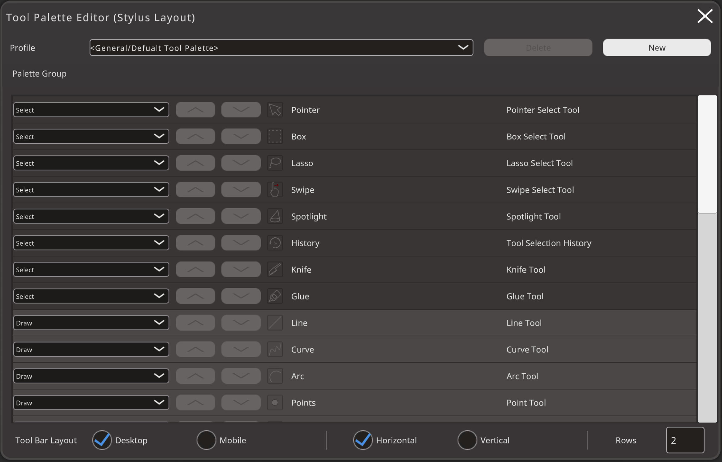 - New: Duplicate the currently selected Tool Palette profile as a new profile.