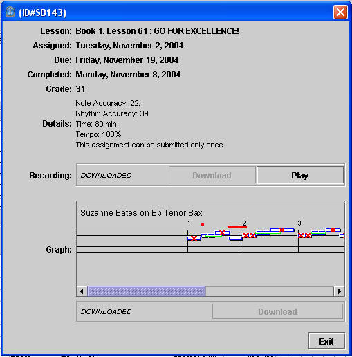Click on the student grade and hear the students recorded performance. Data