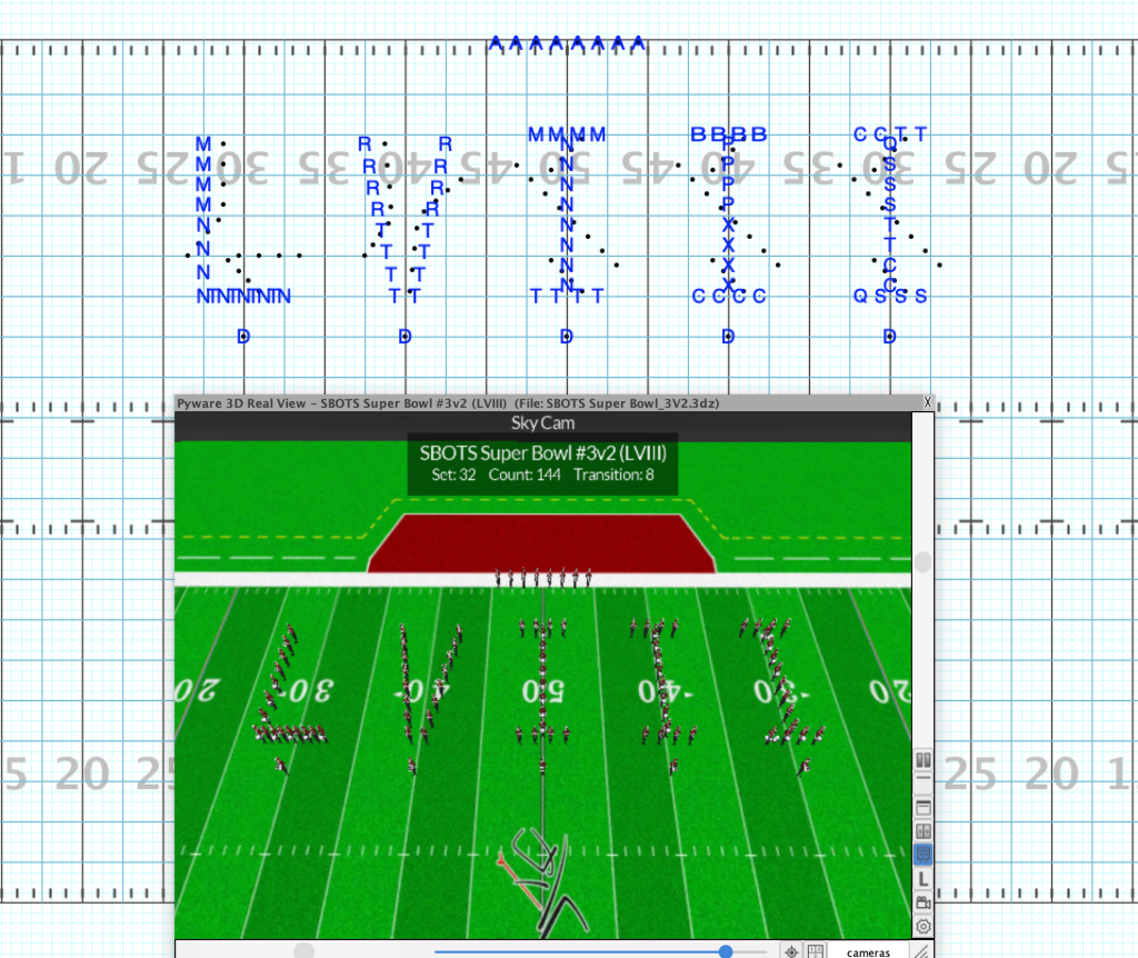 Dr. Little is, foremost, an educator, and there is no better teaching tool for students to learn drill than the UDBapp. Our collaborators at Ultimate Drill Book have built the premier app for designers and directors to simply export the drill created in Pyware to the UDBapp for students to learn on their mobile devices. The app allows for easy-to-understand coordinate and pathway instructions. After Dr. Little wrote the show design for the Superbowl performance in Pyware, he exported that drill to the UDBapp, and performers were able to learn their specific routes right from their phone.