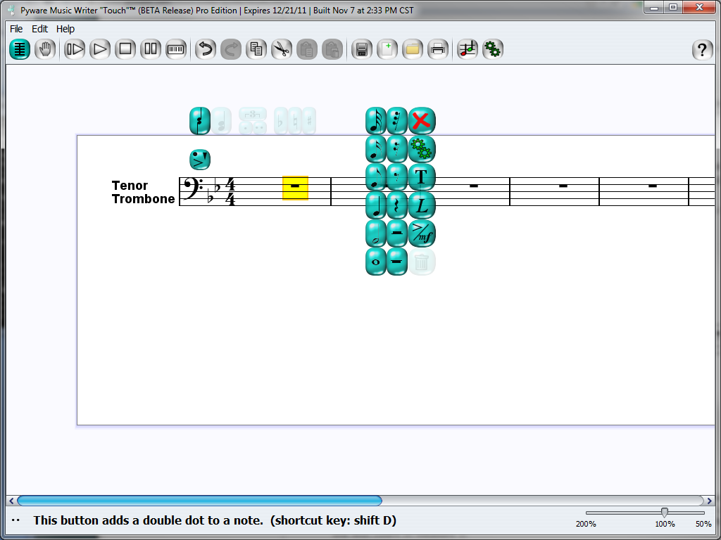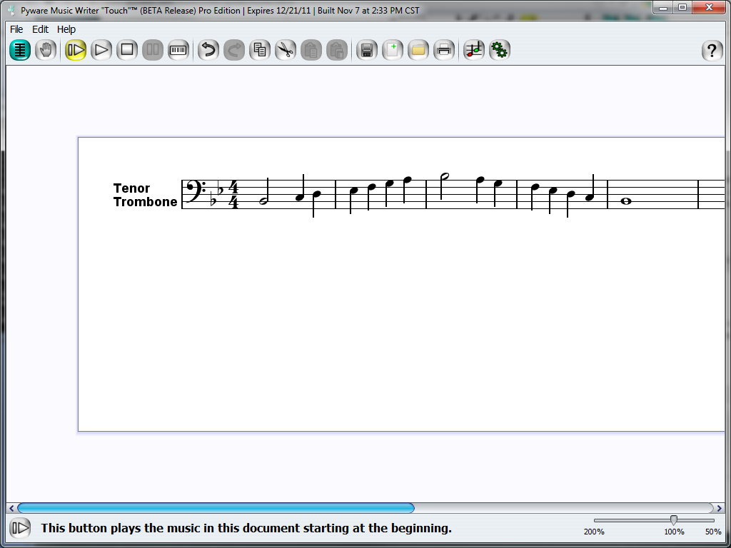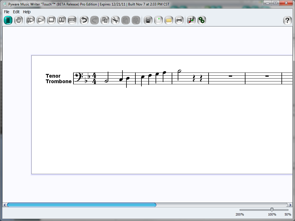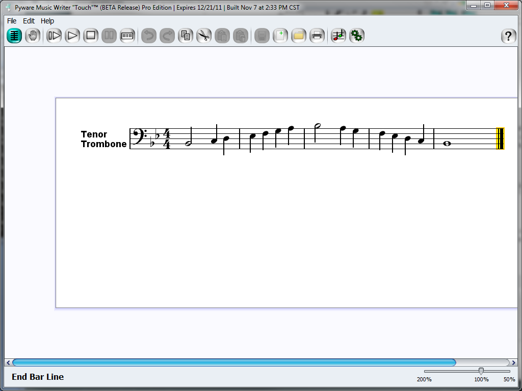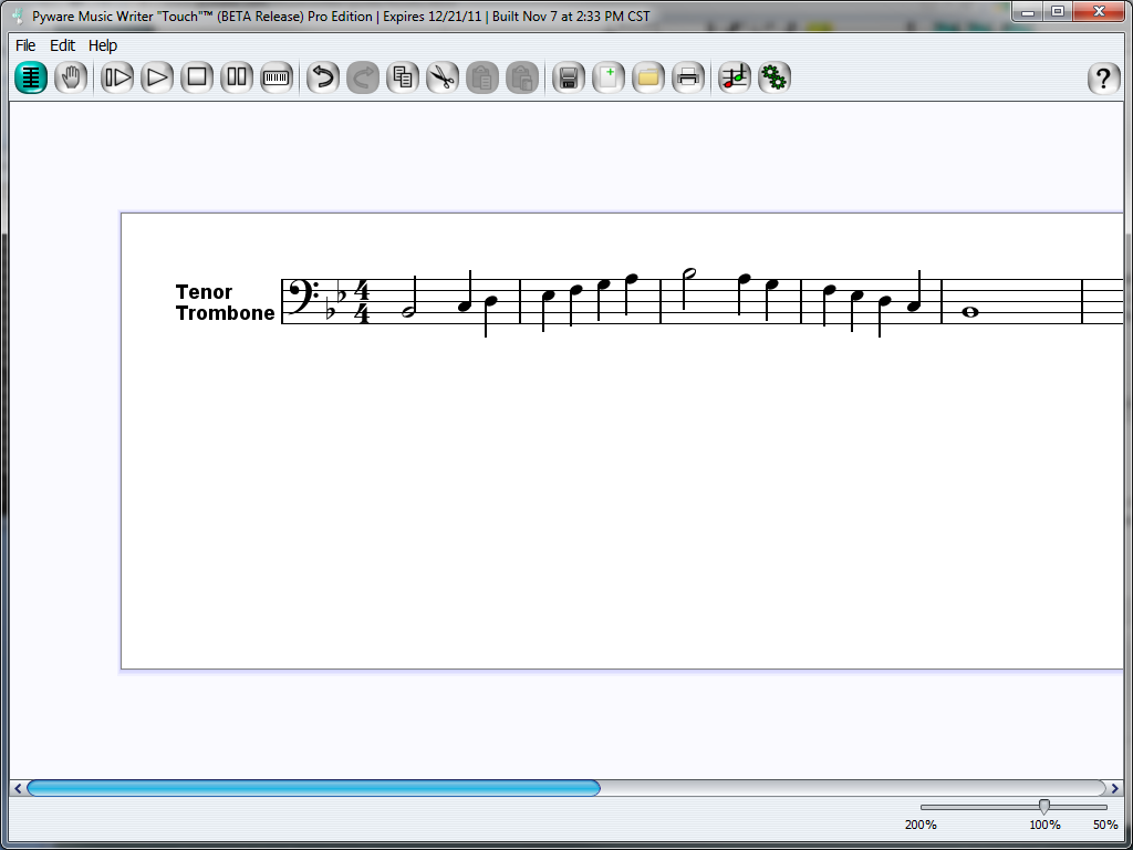 For an example of how to start creating in Music Writer Touch, let's develop a simple scale study to print and practice later. For this example, let's play Trombone.