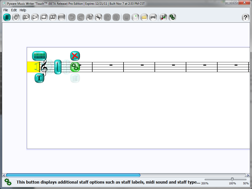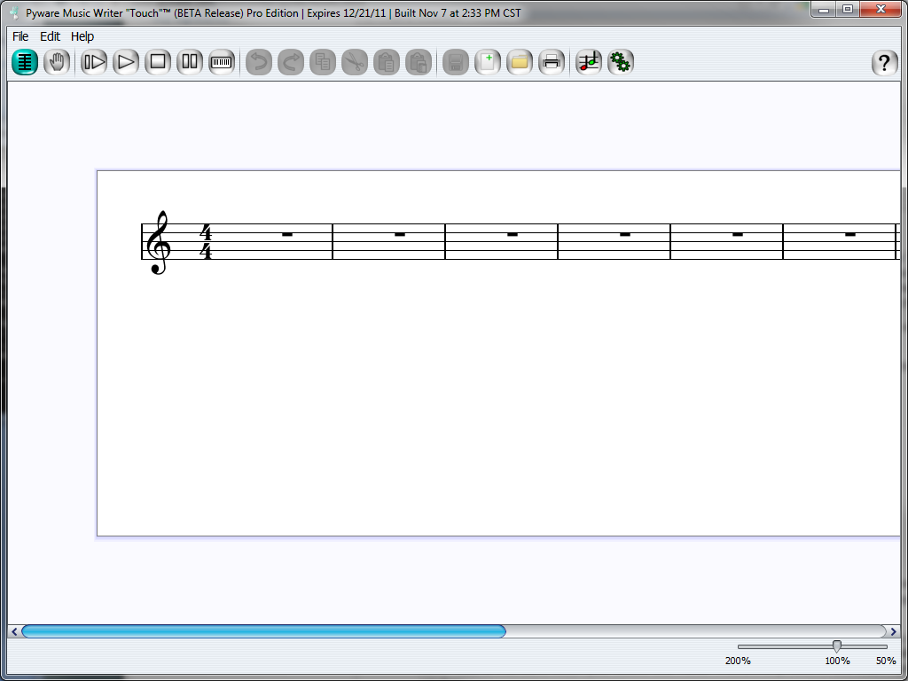 The following is a simple scale study created to get new users accustomed to the "flow" of Music Writer Touch. If you are seeking additional information, please reference the Help Menu in the program, or select the Helper button and then select an element in the program. This will display detailed information for that particular element you selected.
