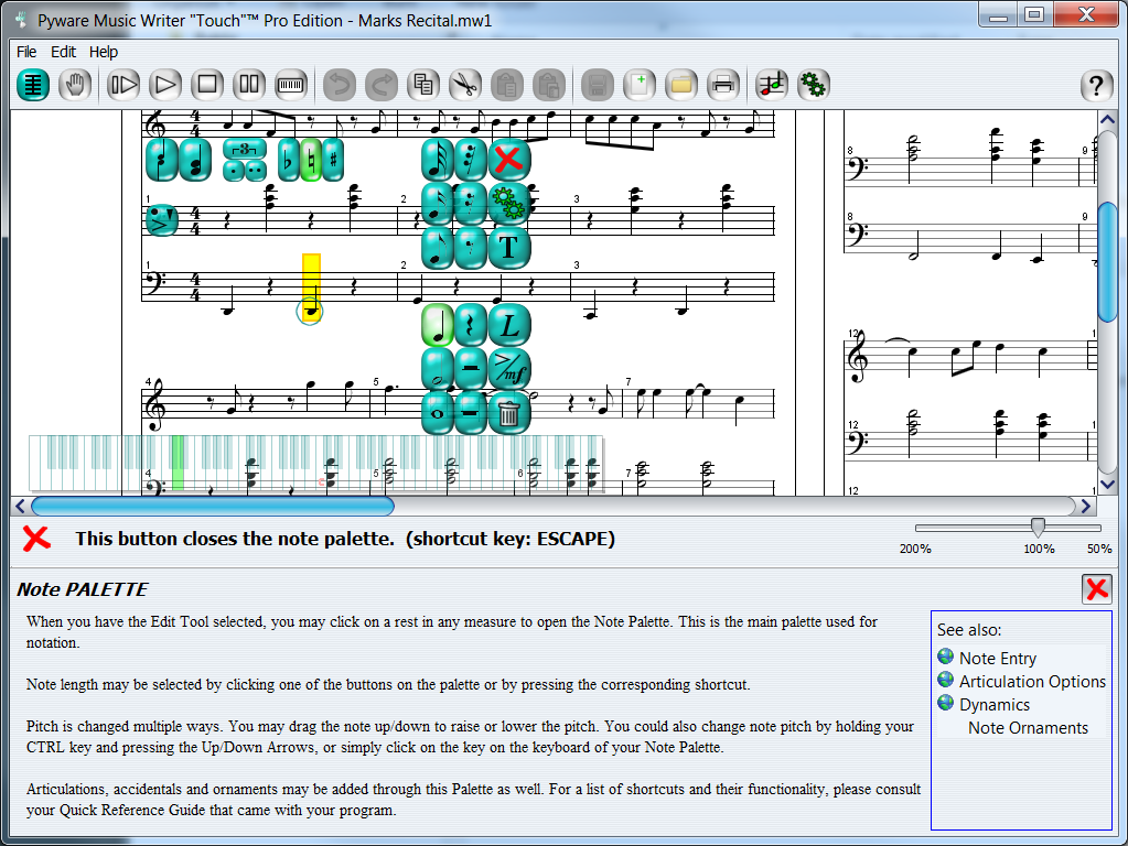 We knew we were on the right track when we had middle school kids come up to our booth at conventions and dive right in to the program, all without any explanation or instruction. Music Writer Touch boasts a user-friendly interface with a simple, yet intuitive design. No searching for functions, while keeping your work space clutter free at the same time. Non-invasive help functions will point you in the right direction should you ever need guidance.It’s interactive.