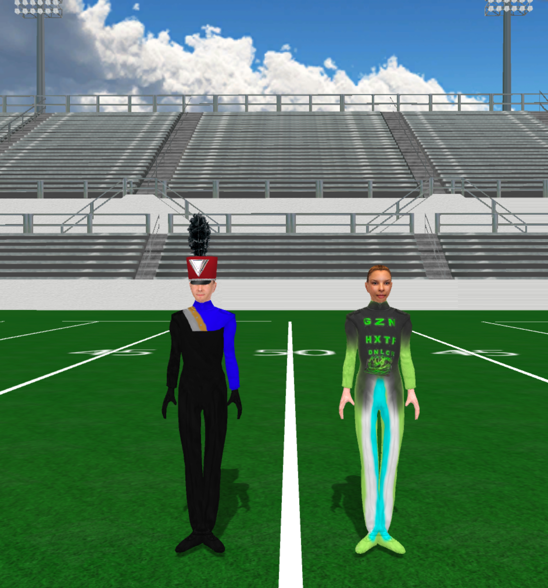 Fabric files, such as uniforms and flag silks, are applied in the drill file’s Document Options.