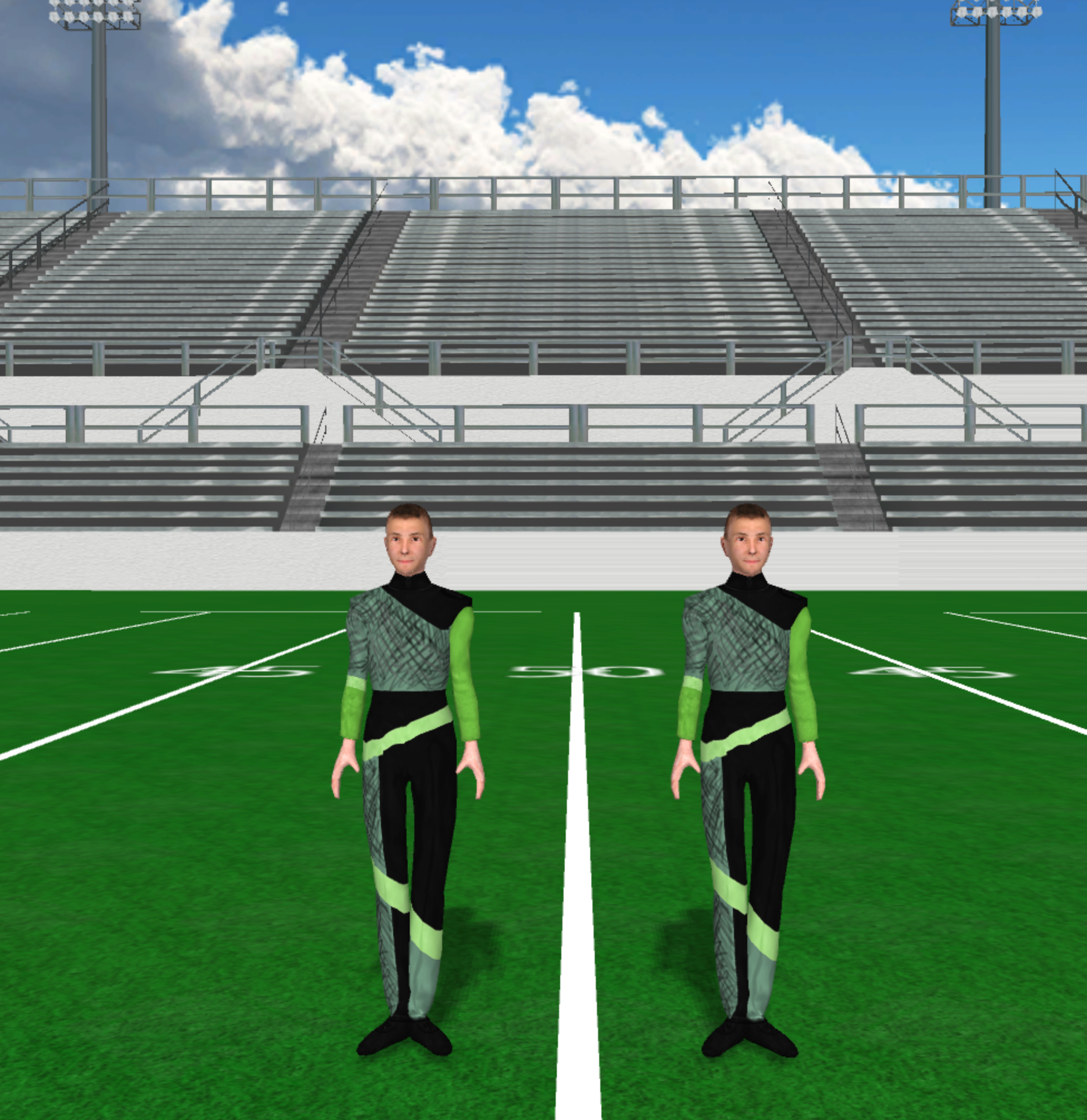 Fabric files, such as uniforms and flag silks, are applied in the drill file’s Document Options.