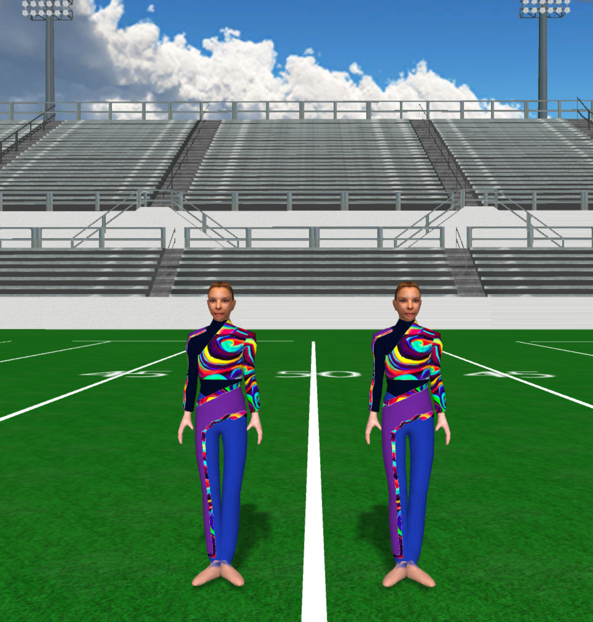 Fabric files, such as uniforms and flag silks, are applied in the drill file’s Document Options.