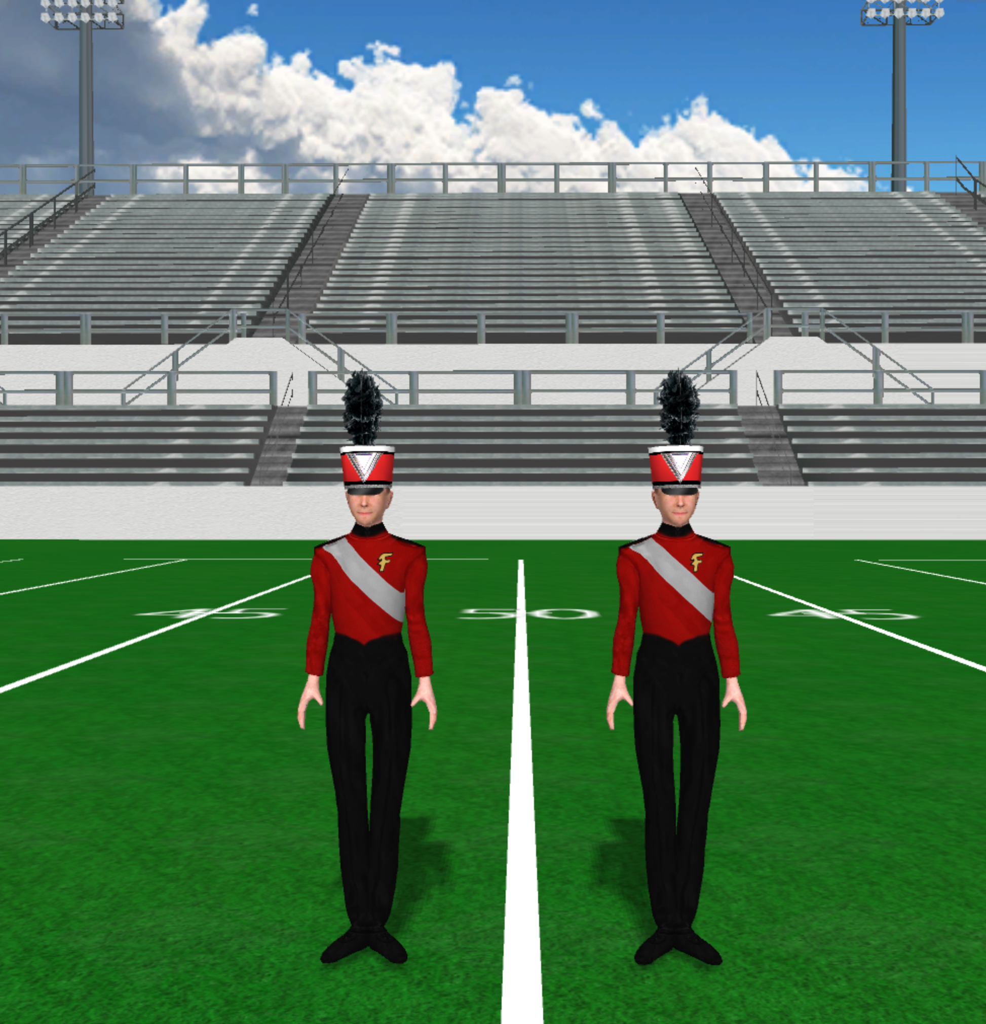 Fabric files, such as uniforms and flag silks, are applied in the drill file’s Document Options.
