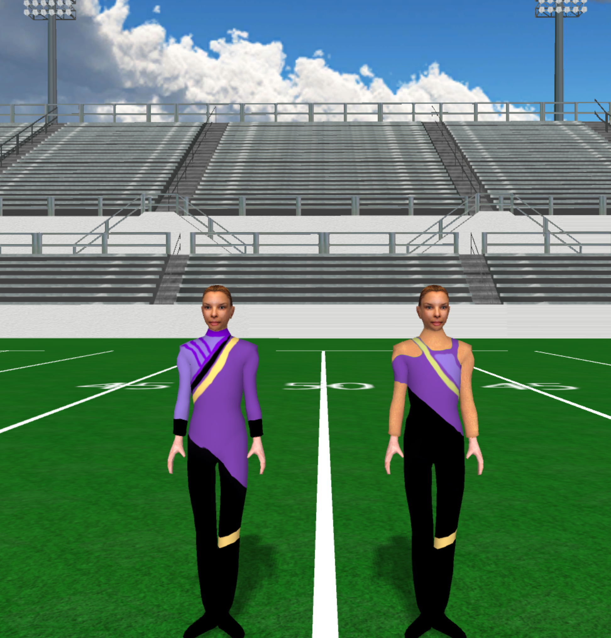 Fabric files, such as uniforms and flag silks, are applied in the drill file’s Document Options.
