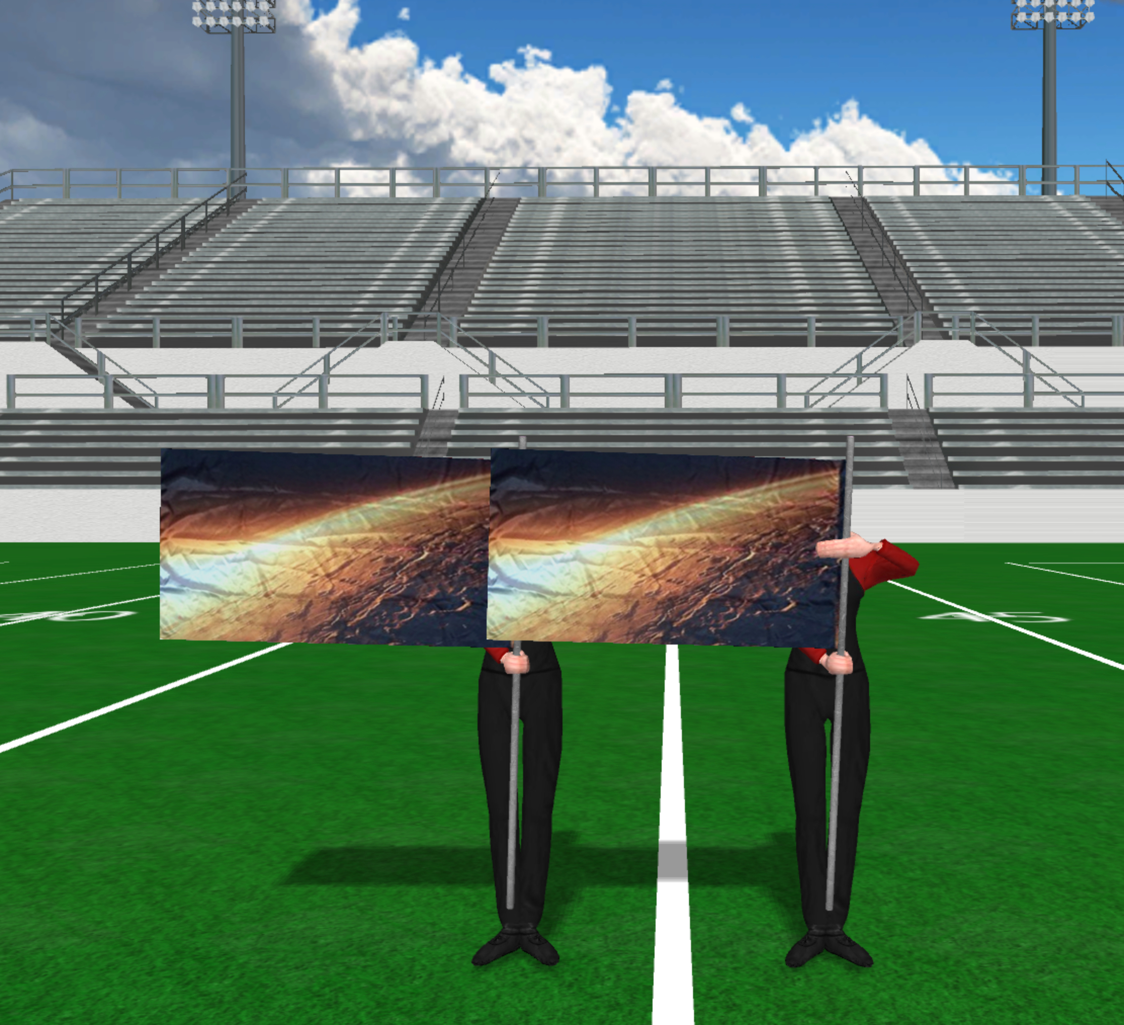Fabric files, such as uniforms and flag silks, are applied in the drill file’s Document Options.