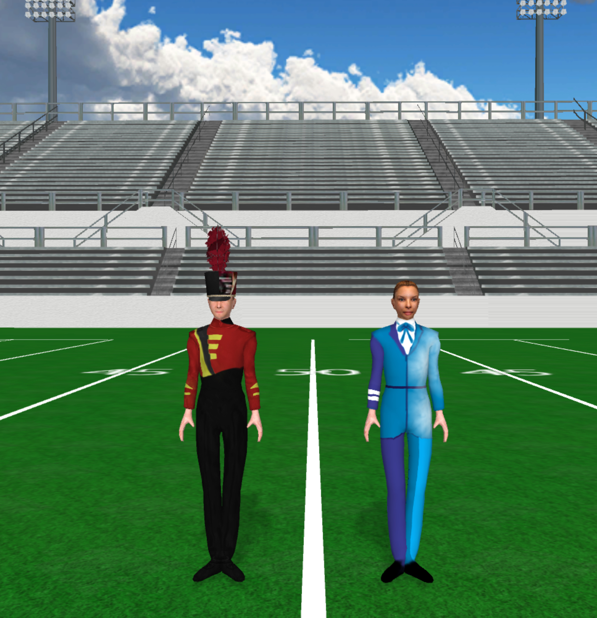 Fabric files, such as uniforms and flag silks, are applied in the drill file’s Document Options.